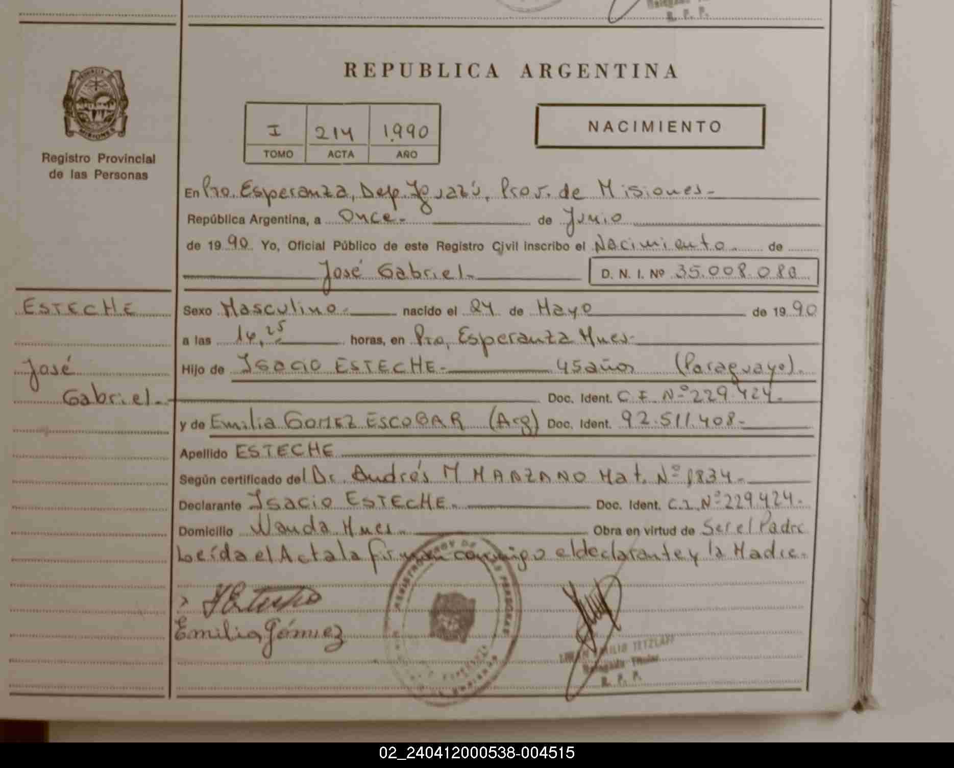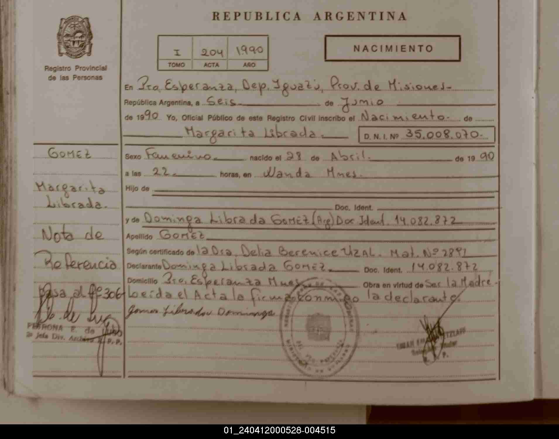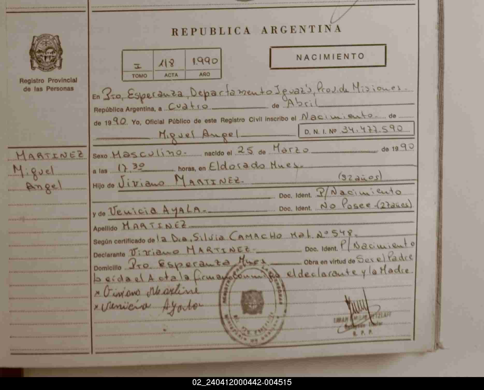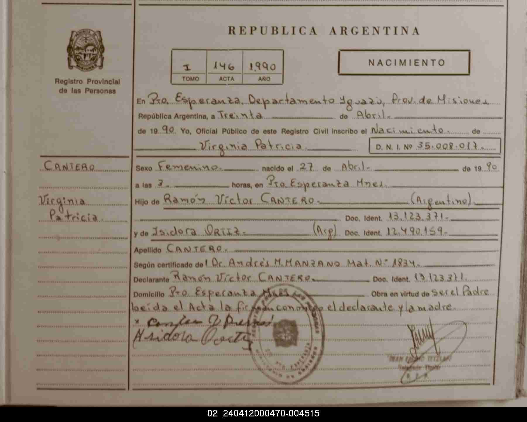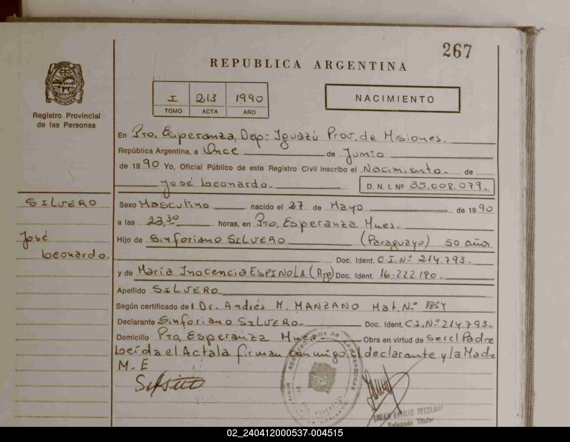 Index of /imagenes/NACIMIENTOS/PARTIDAS/PUERTO ESPERANZA/004515